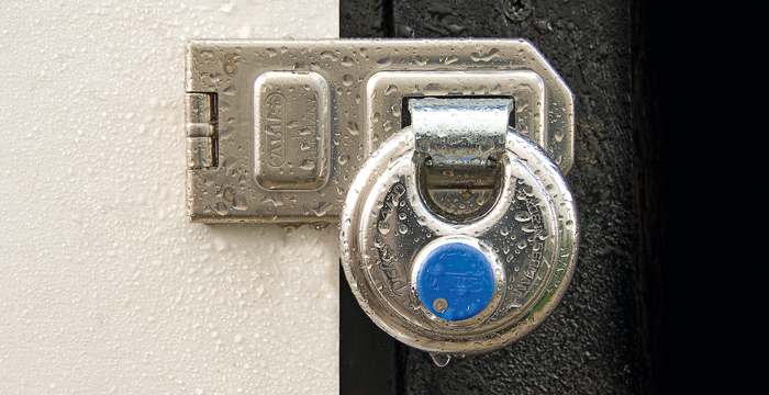 モノを一定期間保管する物置、望まない立ち入りを抑制するフェンスなどは、それほど頻繁に人が利用しないシーンになりやすいと思います。天候や人や車の往来など、さまざまな環境に晒されることになればなるほど、思わぬトラブルが起こりやすくなる可能性があります。フェンスやポールチェーン、物置やストッカーにも南京錠の取り付けホールが標準に備えられているものも多く、堅牢な留め具として使用することで、予期せず、チェーンが外れてしまったり、扉が開いてしまったりしてしまうリスクを軽減する作用が期待できます。