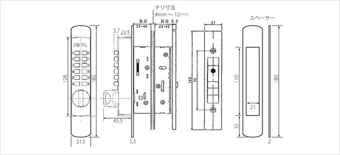 玄関などで広く普及している引違戸用に設計された、軽量でコンパクトな引違戸用テンキーロックです。